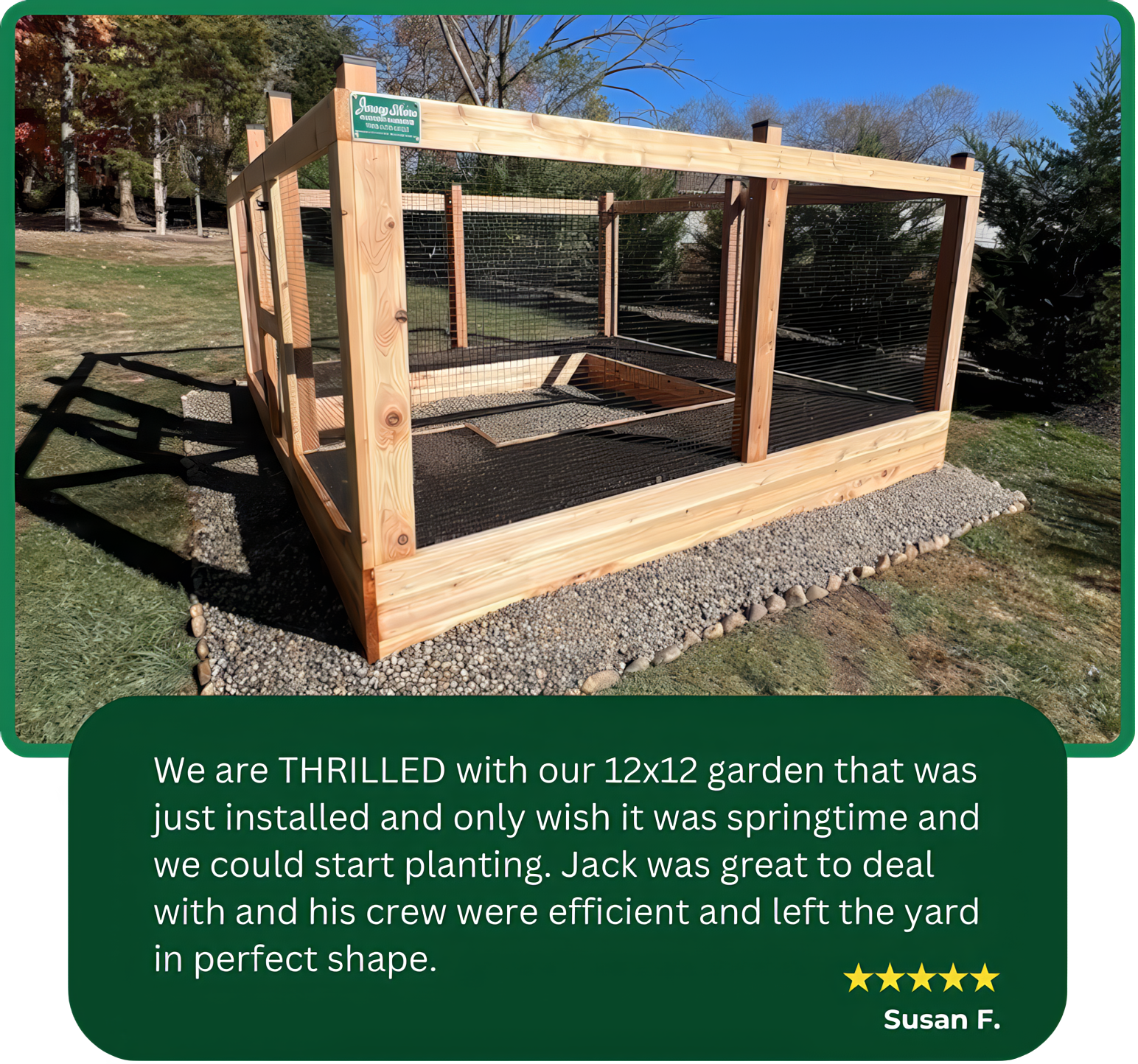 "Jack’s work is excellent and looks beautiful!!! Jack’s work is excellent and looks beautiful!!! I love my new garden and am delighted to have the critters stay outside the garden!"